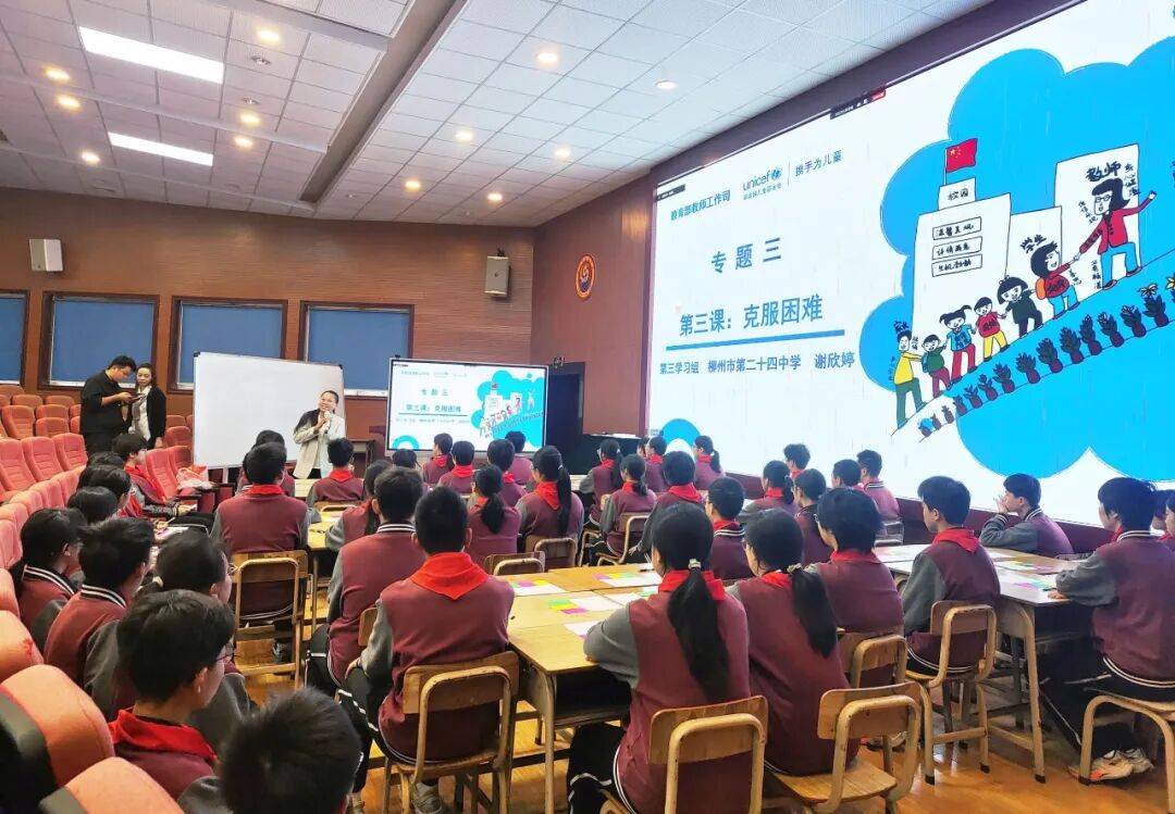 2025-10-26多宝体育,多宝体育官方网站,多宝体育APP下载秋阳送暖,桂子飘香。2025年10月24日上午,教育部-联合国儿童基金会社会情感学习与学校管理改进项目2025年广西初中主题课程试教活动在柳州市龙城中学报告厅隆重举行。来自全区各级项目学校的校领导、骨干教师及专家团队齐聚一堂,共同观摩了以《克服困难》为主题的社会情感学习示范课。本次活动由柳州市第二十四中学谢欣婷老师执教,我校2024级14班学生参与课程展示。