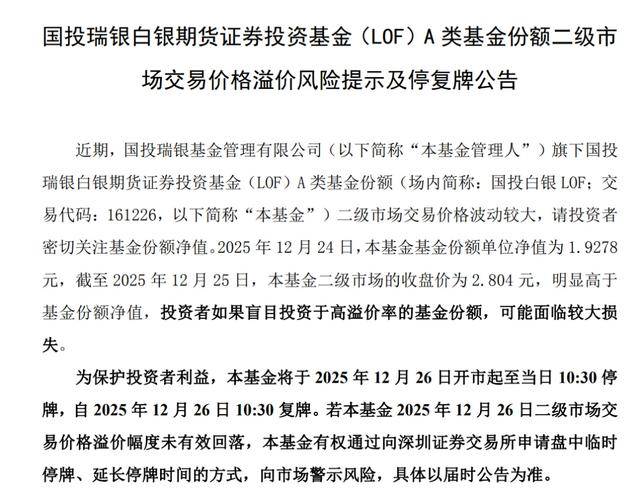 现在,国投瑞银白银期货LOF的C份额已暂停申购,这也给所有投资者敲响了警钟:别把基金当股票炒作,看不懂的金融产品,坚决不碰。