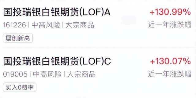 全市场唯一一只投资白银期货的公募基金——国投瑞银白银LOF,也跟着水涨船高,近一年高涨超130%。