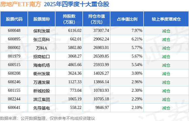 根据2025基金年报公募基金重仓股数据,重仓该股的公募基金共4家,其中持有数量最多的公募基金为南方基金的房地产ETF南方。房地产ETF南方目前规模为46.79亿元,最新净值1.3045(4月7日),较上一交易日上涨0.41%,近一年上涨2.65%。该公募基金现任基金经理为罗文杰。罗文杰在任的基金产品包括:500ETF联接LOF,管理时间为2013年4月22日至今,期间收益率为151.74%;中证500ETF南方,管理时间为2013年4月22日至今,期间收益率为160.03%;沪深300ETF南方,管理时间为2013年5月17日至今,期间收益率为142.57%;南方沪深300ETF联接A,管理时间为2013年5月17日至今,期间收益率为128.92%。