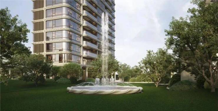 站在社区内,既能俯瞰高尔夫级果岭草坪、万国喷泉的精致园景,又能平视中央绿地的无边绿意,更能远眺黄浦江的奔流与陆家嘴的璀璨