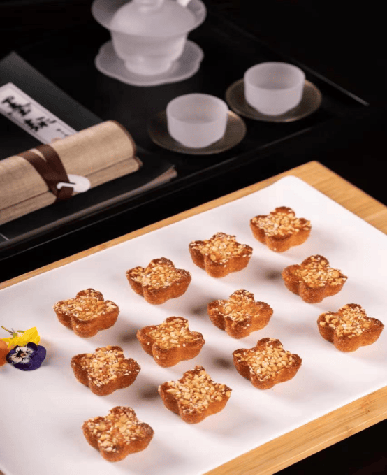 中江八宝油糕源于清朝乾隆年间,一位宫廷糕点师傅在中江城,根据中江丰富的物质资源结合宫廷传承技艺制作而成,采用小麦精粉、鸡蛋、蜂蜜、白糖、菜籽油、核桃仁、花生仁、蜜饯等八种原辅材料,故名“八宝油糕”。2024年,被列入德阳市第六批非物质文化遗产项目名录。
