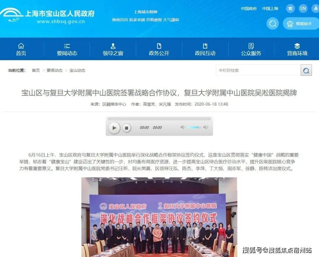 宝山区政府与复旦大学附属中山医院签订战略合作协议,由中山医院对吴淞医院实施全面托管,并计划于“十四五”期间迁建至杨行,初步选址在江杨北路友谊路东南角。