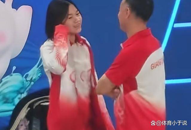 这场在广东奥林匹克体育中心游泳馆举行的比赛,是全红婵时隔183天伤愈复出的首战。她代表广东队出战,以总成绩2369.8分帮助队伍成功卫冕女子团体金牌。热身阶段,何威仪教练的目光始终追随着跑道上的全红婵,当她完成热身跑步回到教练身边时,脸上露出羞涩的笑容,何教练早已备好水壶,眼神里满是关切。这种默契源于长久的陪伴,从全红婵11岁进入广东省队开始,何教练便在训练和生活中给予她无微不至的照顾。