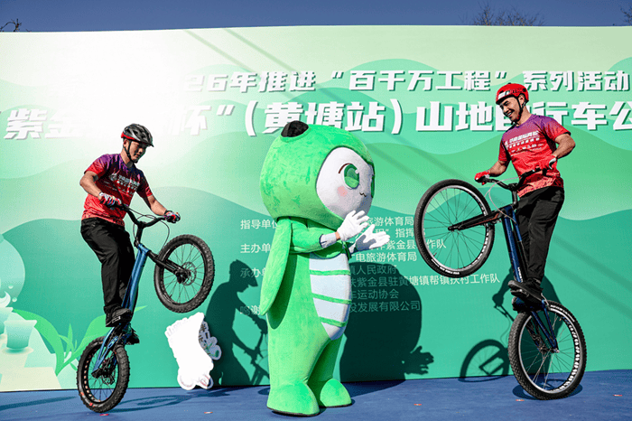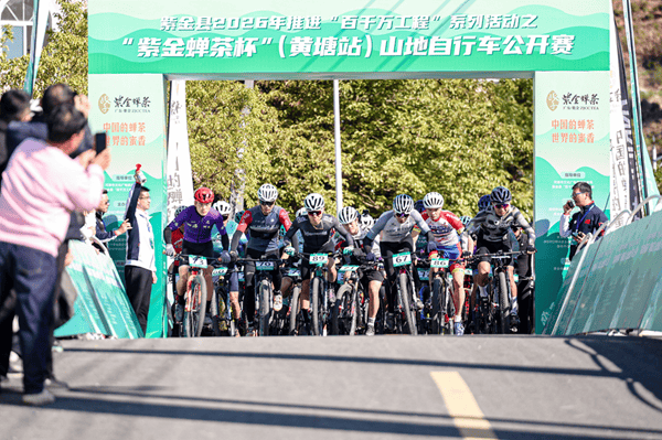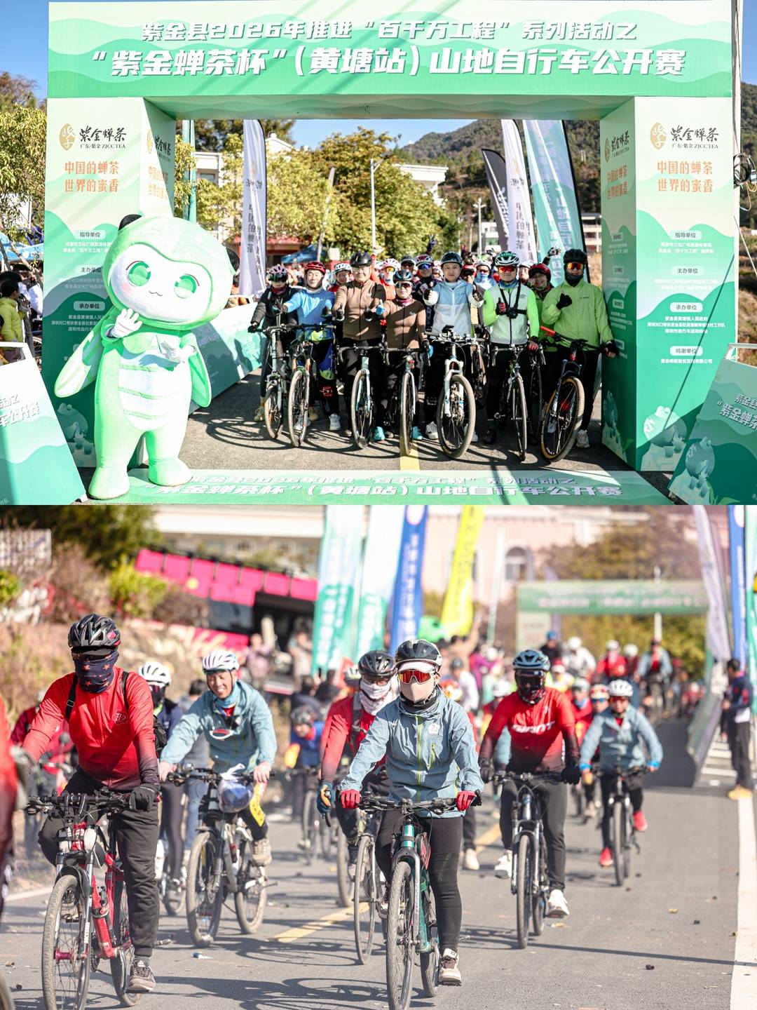 2026年1月10日上午,河源市紫金县黄塘镇嶂拔村青山绿水间,来自国内外的400多位骑行爱好者齐聚于此,紫金县委书记黄春彭及市、县有关领导共同为赛事开幕鸣枪发令。紫金县2026年推进“百千万工程”系列活动之“紫金蝉茶杯”(黄塘站)山地自行车公开赛正式拉开帷幕。