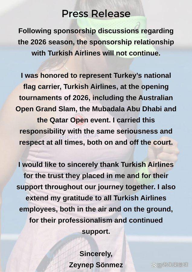 2026-02-17多宝体育,多宝体育官方网站,多宝体育APP下载土耳其网球一姐索内兹现在就得面对这个难题。就在前几天,她在社交媒体上扔出一颗炸弹——跟合作多年的土耳其航空分手了。说得体面点叫“不再继续”,说白了就是人家不跟她玩了。