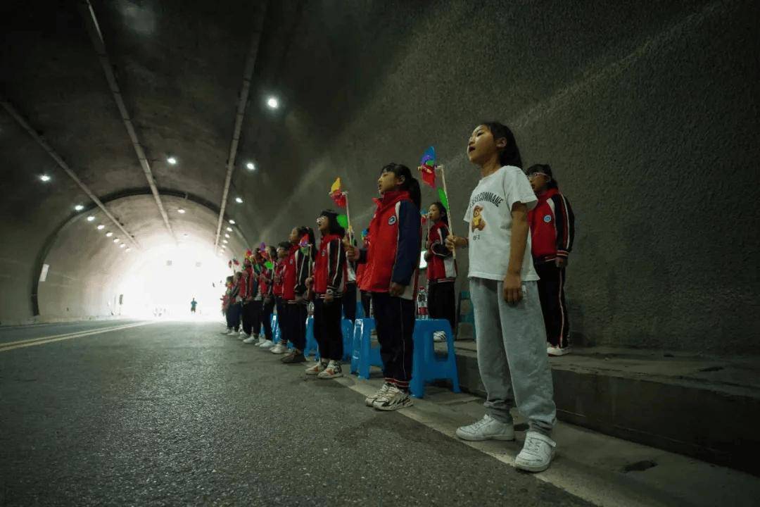 从2023年起,汶川马拉松便多了一个环节,则是在“默语隧道”跑出来的地方,增加了一个最冲击跑友们内心的场景,小朋友手举希望风车合唱——《歌唱祖国》。