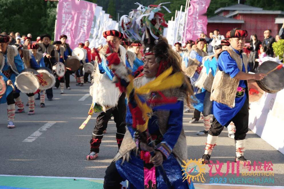 汶川有着被称为“云朵上的民族”——羌族,他们一直保留着流传数千年古老且神秘的民族文化,每年开赛前,羊皮鼓舞表演为所有跑者送上一年来最独特的“祈福”。