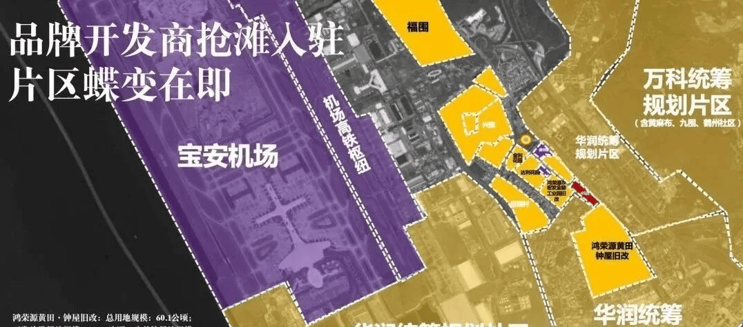 华润(草围旧村及南片区城市更新单元)、鸿荣源(钟屋黄田旧村更新项目)、宏发(黄田金碧片区城市更新旧改项目,在建,有大仟里商业综合体)等房企巨头均已抢滩入驻,助力片区蝶变,大体量城市更新革新片区价值,未来将不断丰富项目周边的文体、商业配套,进一步提升片区的生活品质。