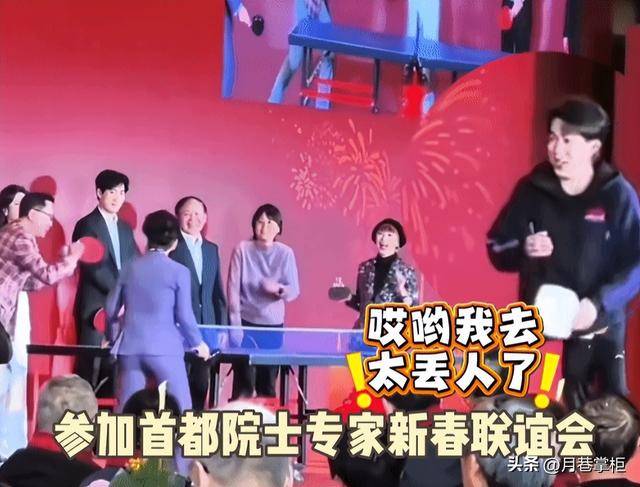 最逗的就是趣味比赛,他跟乒坛传奇邓亚萍一组,对面是演员吴刚和他爱人岳秀清。