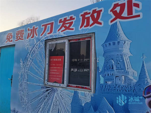 在滑冰场旁边的冰刀免费领取处,记者了解到,凭身份证便可以免费领取冰刀,每天来领冰刀的市民和市民达七八十人。
